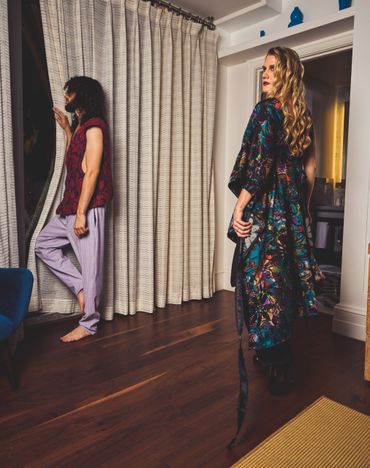 " The gender-bending Distancia — is a look into what was seeping into Nielsen’s mind during the lows of the pandemic. The word means ‘distance’ in Spanish, pulled directly from the swirling emotions felt in the aftermath of the pandemic. The garments explore the emotion of two individuals desperately trying to come together — both individually and collectively — in the wake of distance separating them " - Schon! Magazine