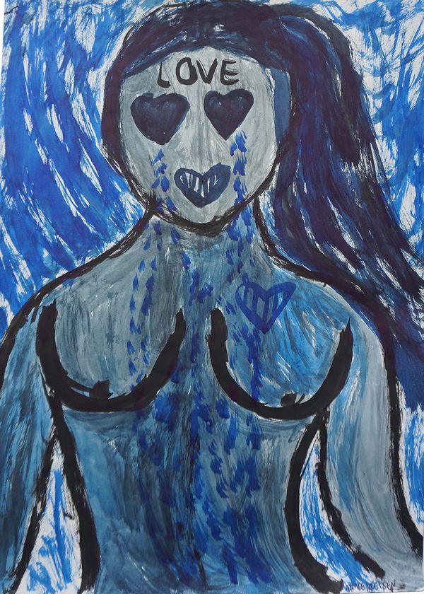 "Drippin' Love" 14x11 Acrylic and India Ink on paper.
