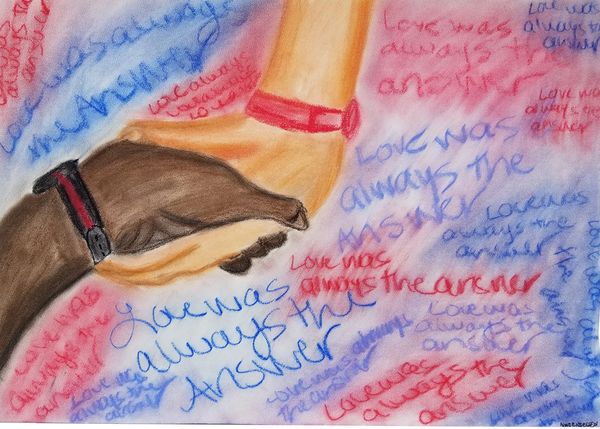 "Love" 5.5 x 8.5 in. colored pencil on paper.